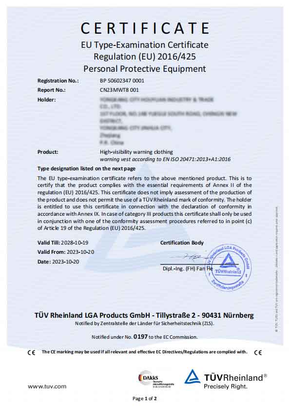 A2: Ang lahat ng Custom na logo na safety vests ay pumasa sa EN 20471 na mga sertipikadong pagsusulit, ganap na kwalipikado para sa EU road safety import at bulk engineering procurement.