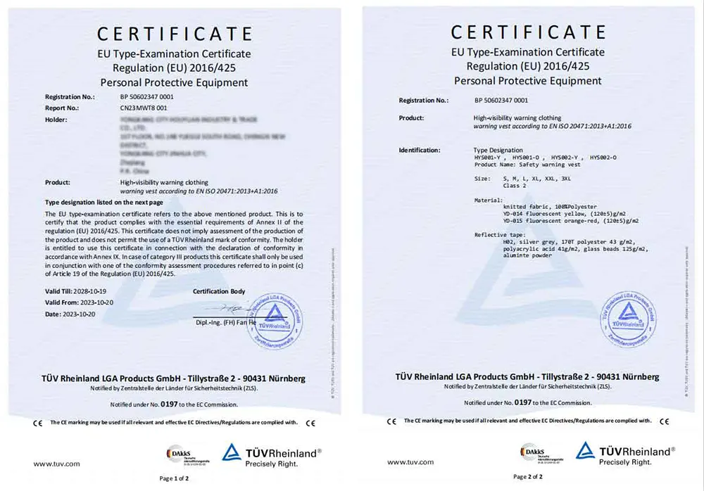 · High-Intensity Reflective Tape: Gumagamit ang aming factory ng mga premium na retro-reflective na materyales na nagsisiguro ng 360° na visibility sa mababang liwanag at mga kondisyon sa gabi.