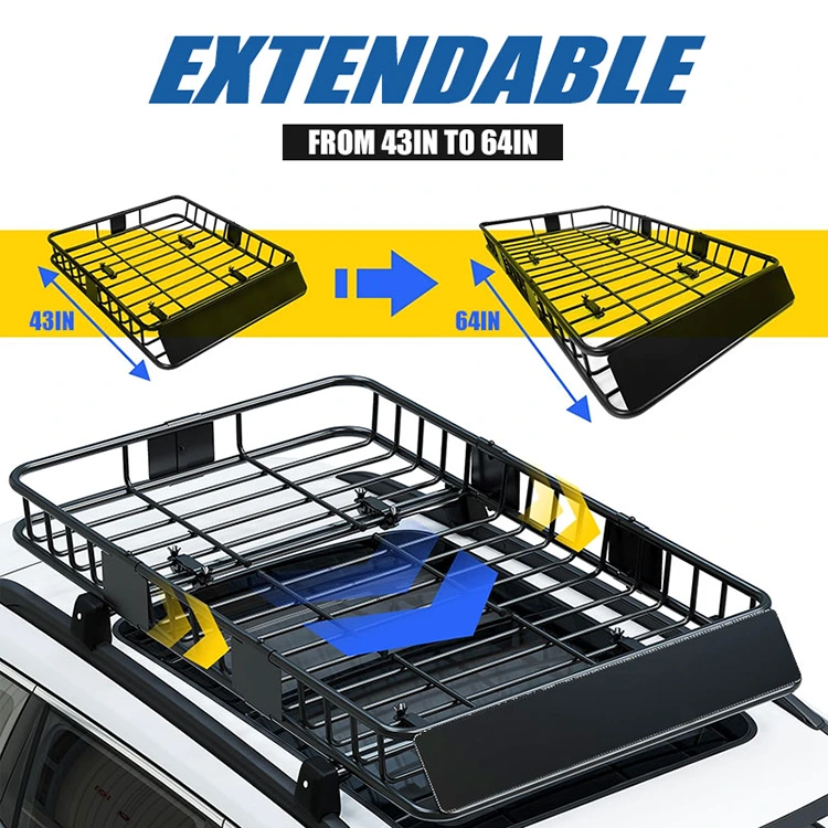 Mapapalawak na disenyo: Ang basket ng rack carrier ng bubong na ito ay may isang matalinong pinalawak na disenyo - laki ng laki (43 "x 39" x 6 ") para sa mga compact na kotse at mapapalawak hanggang sa 64" para sa mas malalaking sasakyan, pag -maximize ang puwang ng kargamento. Ang pagbagsak nito form ay ginagawang madali upang i -disassemble, transportasyon, at mag -imbak kapag hindi ginamit. Ito ay angkop para sa nababaluktot na mga pangangailangan sa paglalakbay at imbakan.